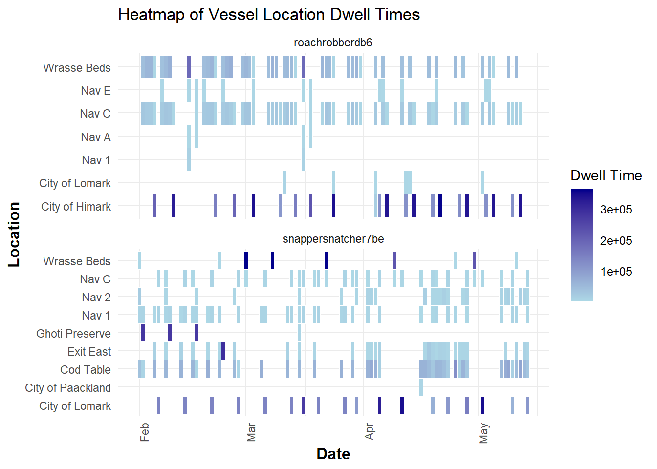 summarise(vessels_at_location = n_distinct(vessel), .groups = 'drop') %>%