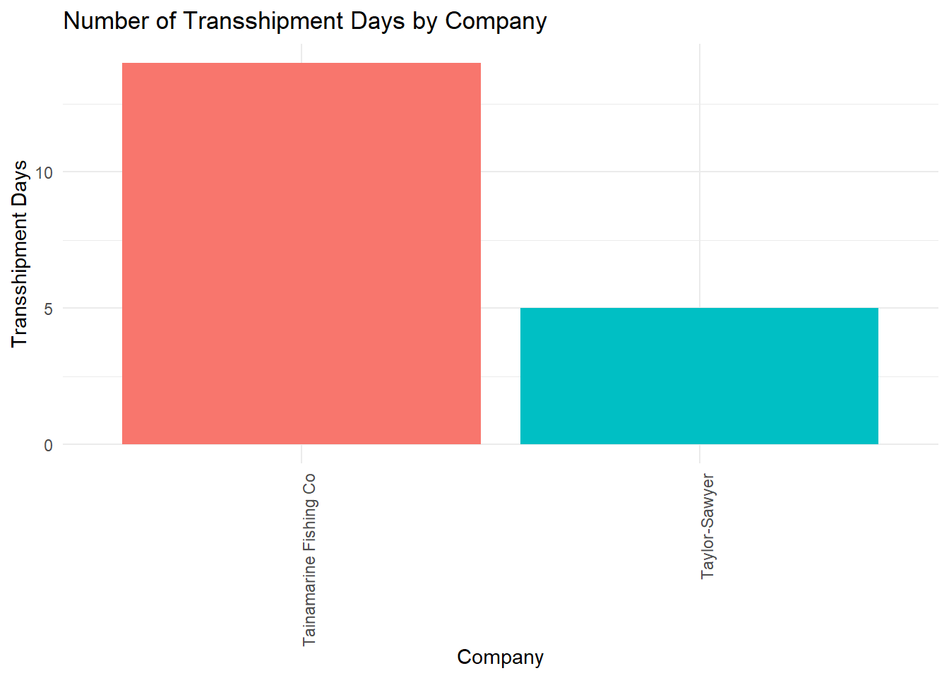 labs(title = "Number of Transshipment Days by Company",