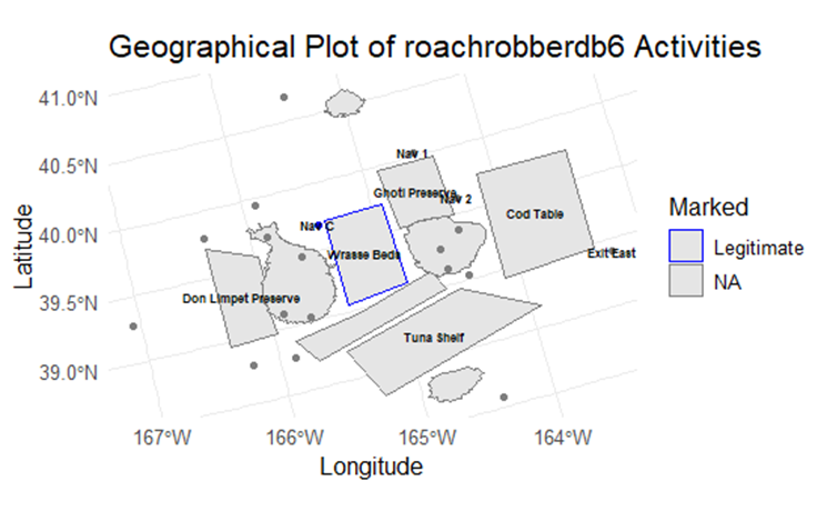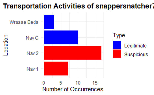 Snappersnatcher7be appears to be frequently visiting areas Nav1 and Nav2, which are located around the Ghoti Preserve. Given the type of fish it typically catches, it should not be near these locations.